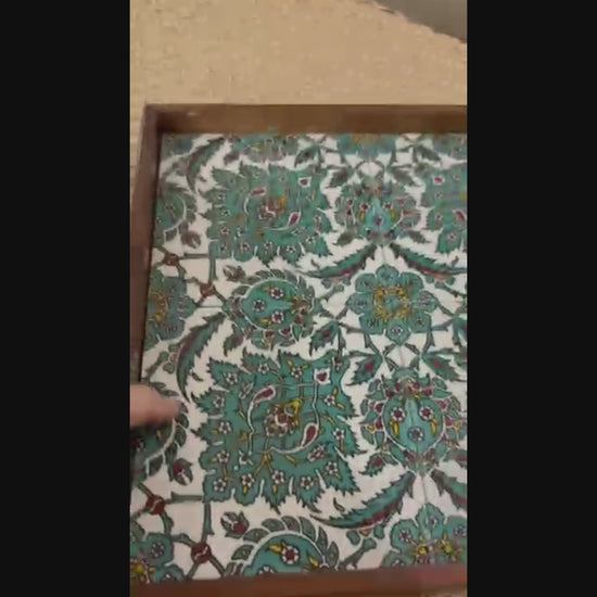 Each tray in our collection is meticulously handcrafted and hand-painted in Palestine using traditional techniques passed down through families of artisans. The process involves shaping the clay, air drying, high-temperature firing, and glazing to create a glossy, durable finish. These intricate steps ensure long-lasting quality while maintaining the vibrant, detailed artwork that Palestinian ceramics are known for.