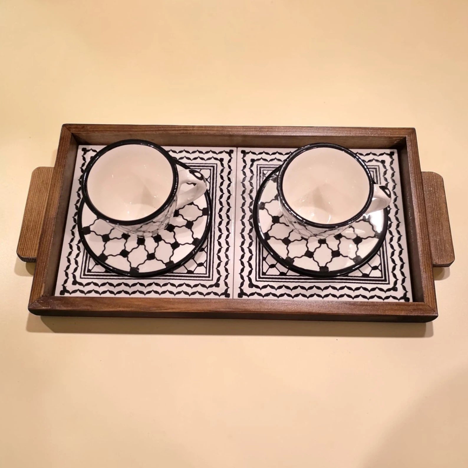 Palestinian Keffiyeh Coffee Set with Rectangle Tray